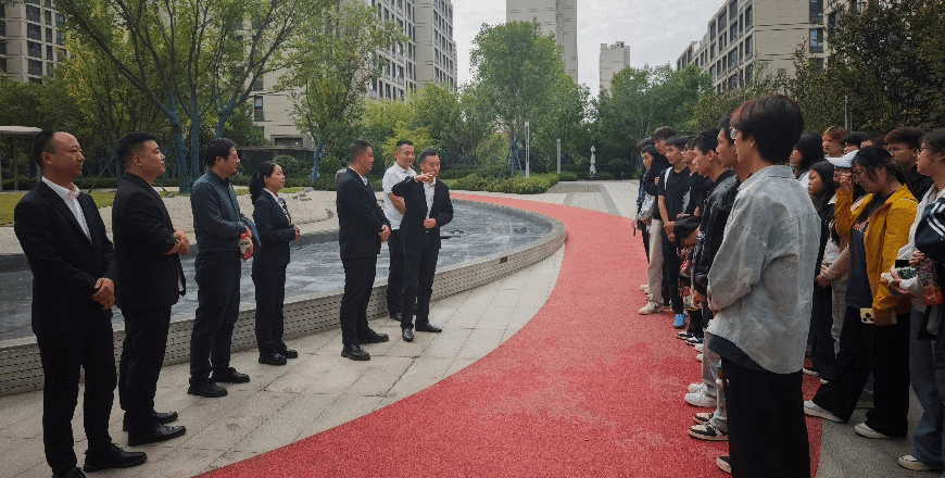 9月29日下午14时,实习队伍转场至碧桂园·云顶项目。作为碧桂园集团打造的高端住宅标杆,该项目以“智慧社区+人文服务”的特色管理模式享誉业界。项目领导带领同学们参观了社区的智能门禁系统和邻里活动中心等。在随后的座谈会上,项目运营总监结合案例详细解读了高端住宅物业的服务标准。同学们就“如何平衡服务质量与运营成本”“年轻业主的服务需求特点”等问题展开热烈提问,现场互动氛围浓厚。
