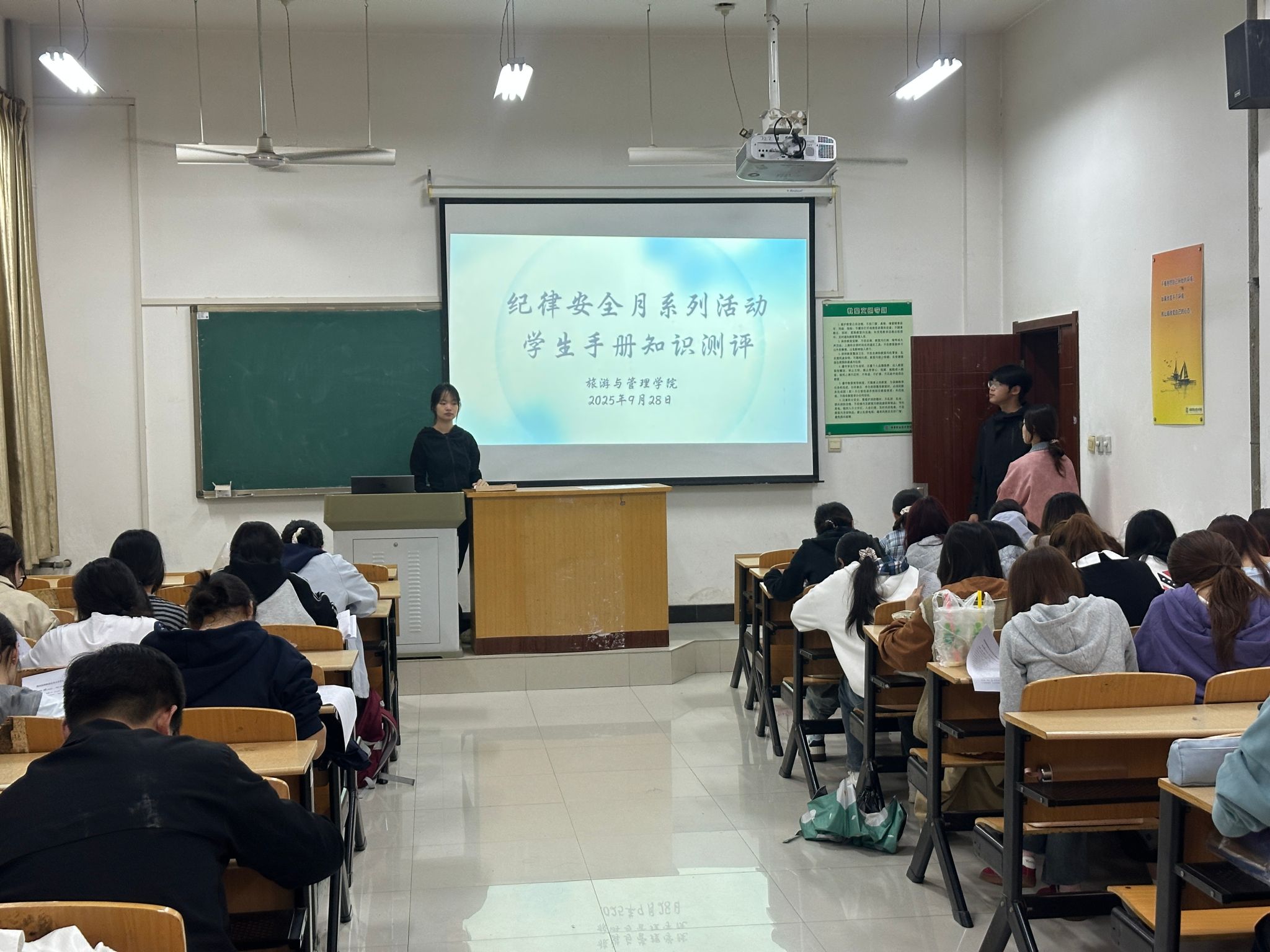 为深化纪律安全月教育成效,引导学生熟知校规校纪、强化安全意识,9月28日,旅游与管理学院针对全体2025级新生组织开展《学生手册》知识测试,学生们积极参与,以考促学筑牢纪律安全防线。