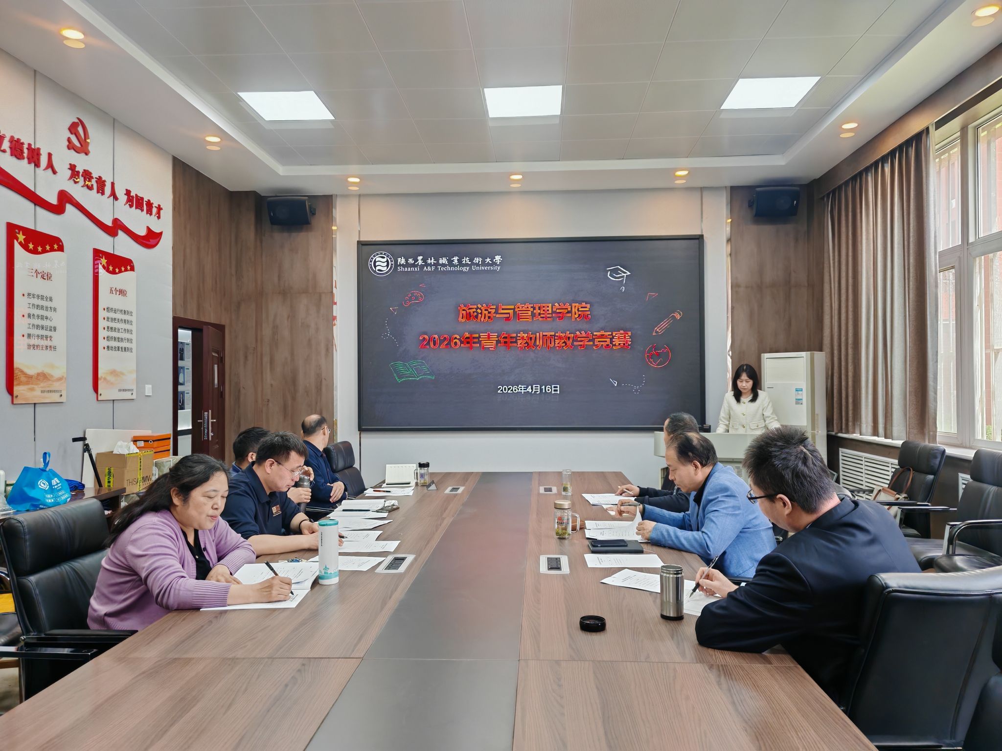 为深入落实学校关于青年教师教学竞赛工作部署,强化青年教师教学基本功,全面提升教学能力与专业素养,2026年4月16日,旅游与管理学院2026年青年教师教学竞赛初赛圆满举行。本次竞赛以“上好一门课”为理念,严格遵循以赛促教、以赛促练、以赛促优的宗旨,为青年教师搭建了交流学习、展示风采、锤炼技能的专业平台。