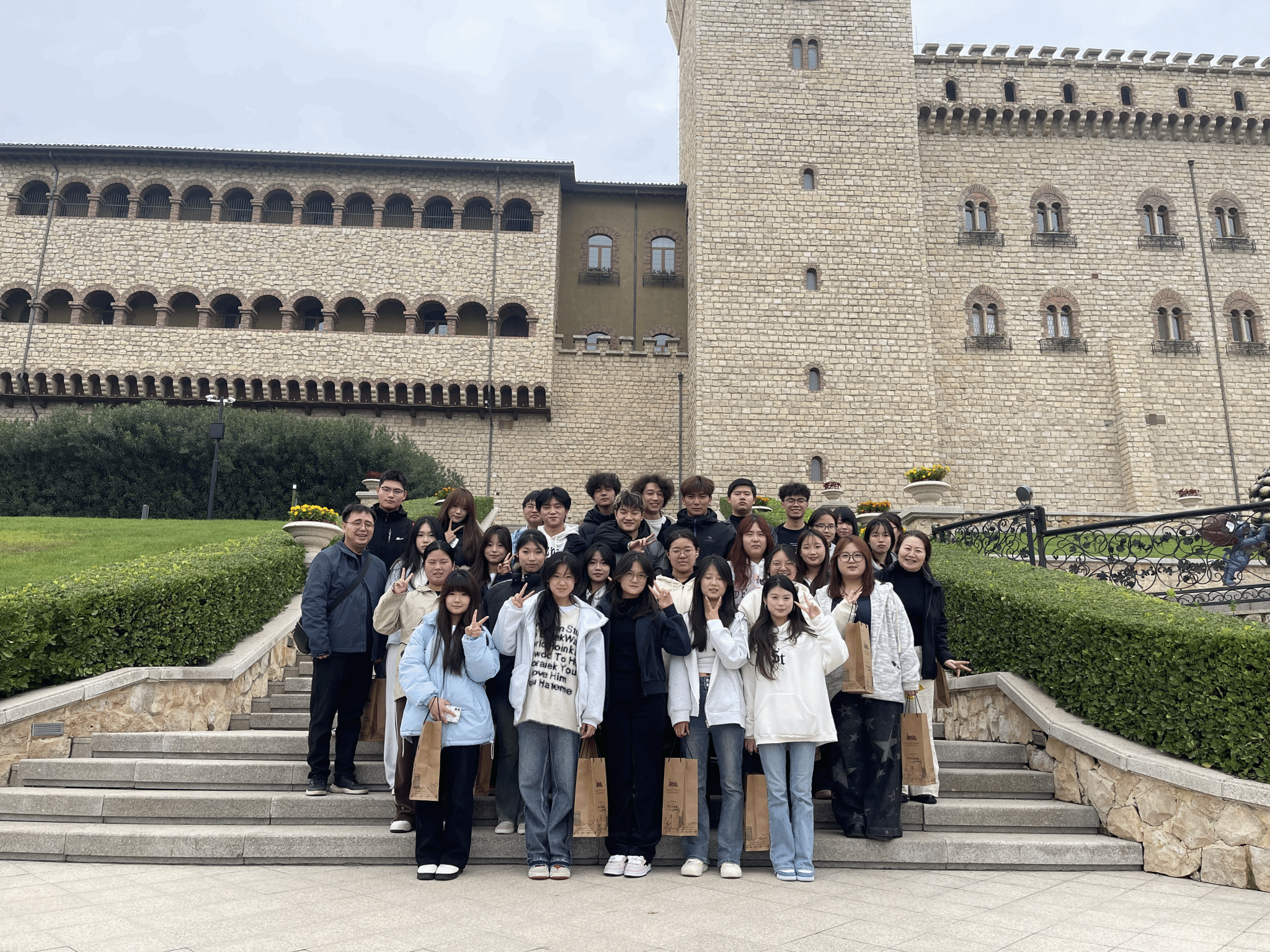下午,实习队伍转赴咸阳张裕瑞纳城堡酒庄。在充满欧式风情的酒庄中,同学们聆听了关于葡萄酒酿造工艺的专题讲座,从葡萄种植、采摘到发酵、陈酿,全面学习了葡萄酒生产的各个环节。在酒窖参观过程中,同学们对葡萄酒的储存条件与品质管理有了更直观的认识。随后的葡萄酒品鉴环节,酒庄专业品鉴师为同学们讲解了葡萄酒的分类、风味特点及品鉴技巧,大家通过观色、闻香、品味,初步掌握了葡萄酒鉴赏的基本方法,也对酒庄运营与餐饮服务的关联性有了更深体会。